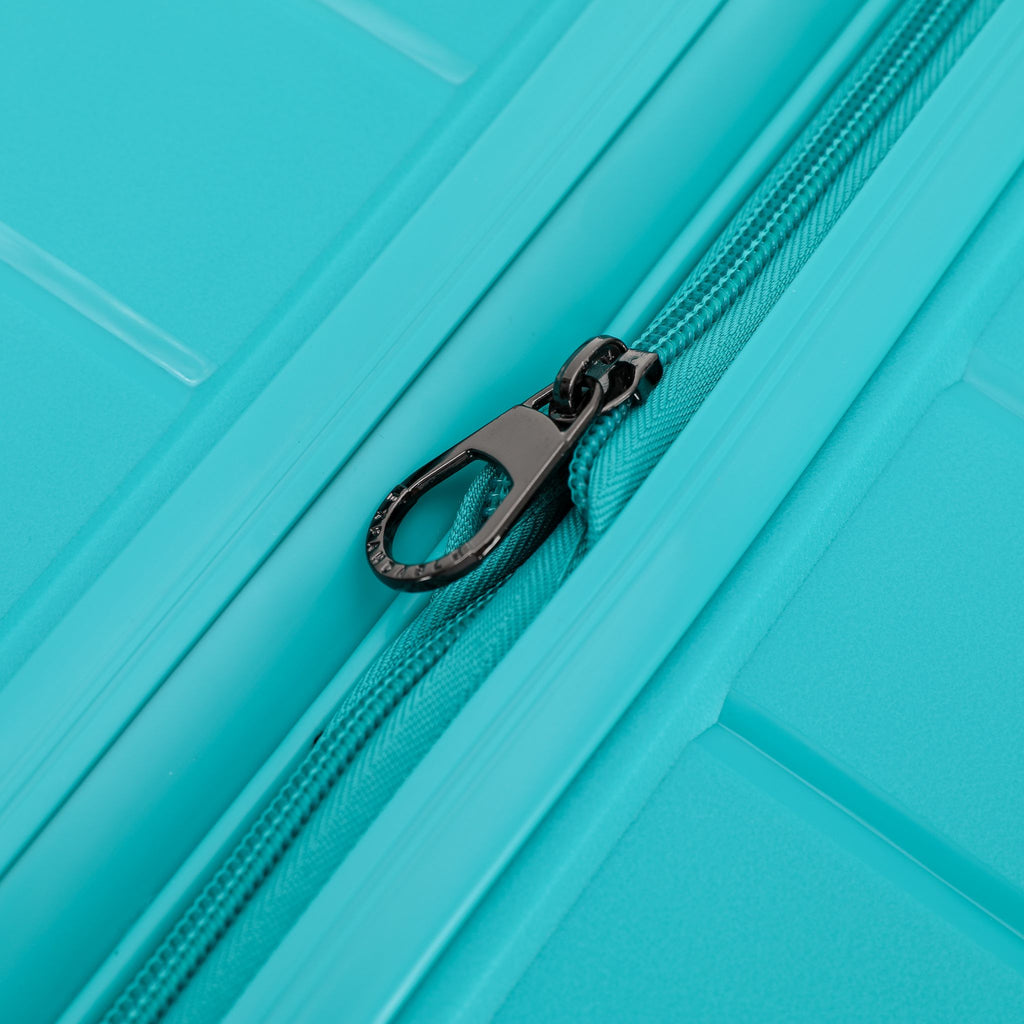 Features: 100% Polypropylene outer shell / Light weight / Easy grip carry handles Top and side on checked sizes only / Deluxe easy glide double-4 wheel system / internal telescopic trolley system / Heavy Duty Zippers / Internal fixed TSA lock / Internal polyester lining divider with two zipper pockets / 5cm Expander all sizes.