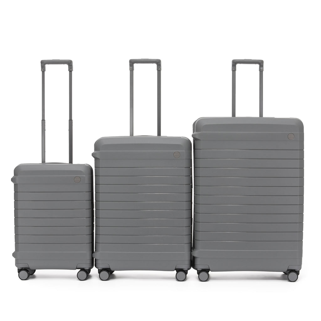 Please note/ Height dimensions include the wheels, we added a set image to show you relative sizing's, plus buying in sets saves hundreds, plus it covers all your travel needs, long haul trips shorter haul travel and provides your vital carryon case